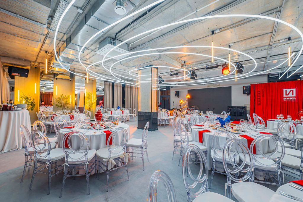 ФУГА ХАБ — это ультрасовременное пространство, где эстетика, архитектура и технологии соединяются в единую композицию. Просторный зал с витражными окнами с видом на озеро Алебашевское, продуманный дизайн, выход на терассу, громадные экраны, отличный звук и свет.