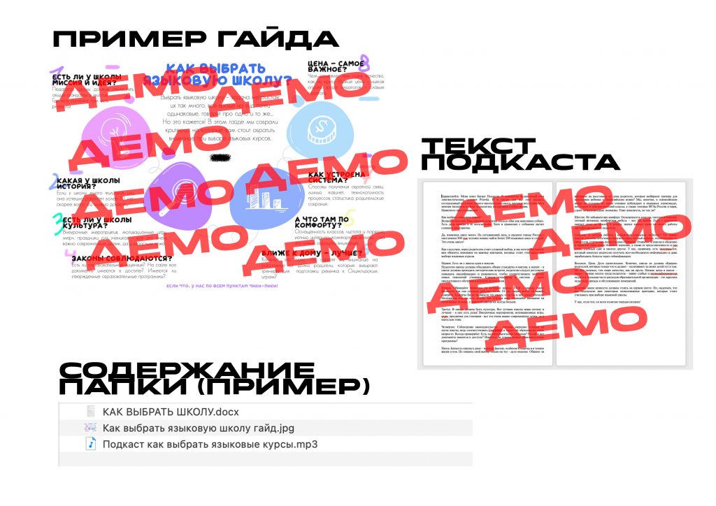 Рекомендации по использованию гайдов и подкастов: добавить в гайд ваш логотип, озвучить подкаст следует руководителю школы. Добавьте ссылку на гайд и подкаст в ваш скриптбук и регламентируйте кейсы, в которых администратор должен их подарить клиенту: в случае сомнений, в случае отсева, перед пробным занятием и др.