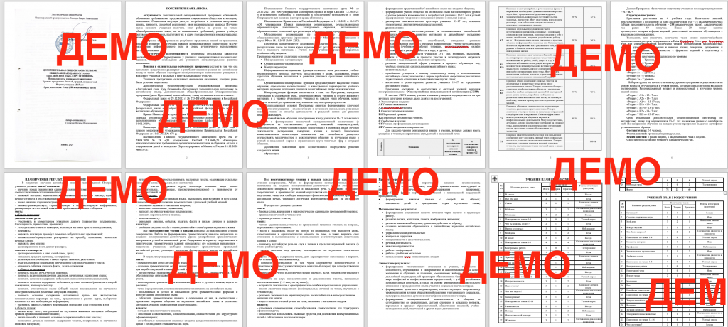 - рабочая поурочная программа курсов Prepare 1-7 в формате (внутри подотчетной программы)