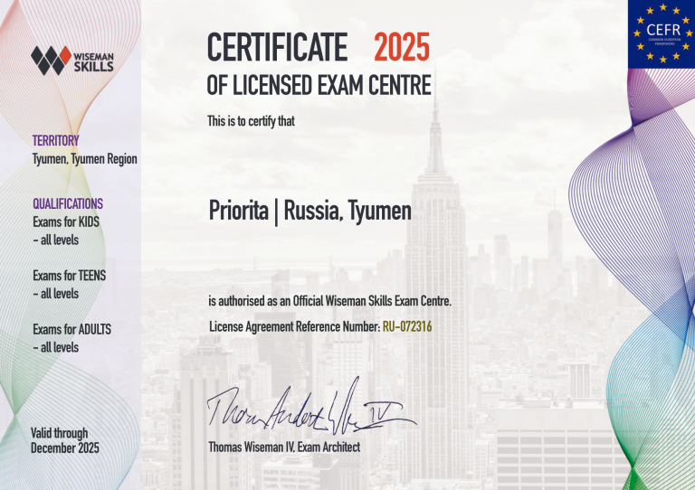 Priorita — аккредитованный тест-центр независимых экзаменов WISEMAN SKILLS для школьников. Ежегодно более 150 детей получают сертификаты от независимого экзаменационного центра.