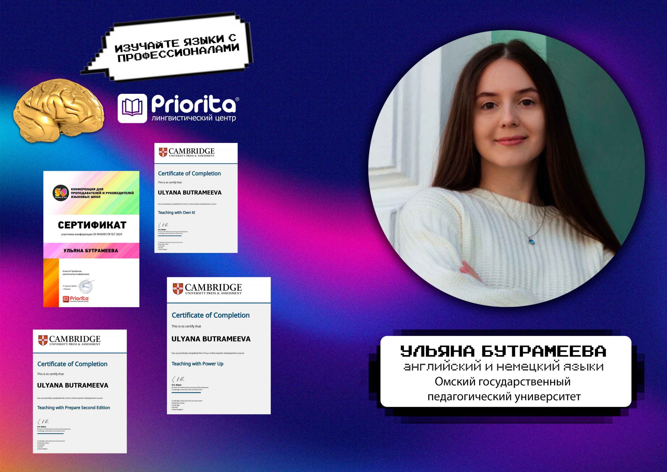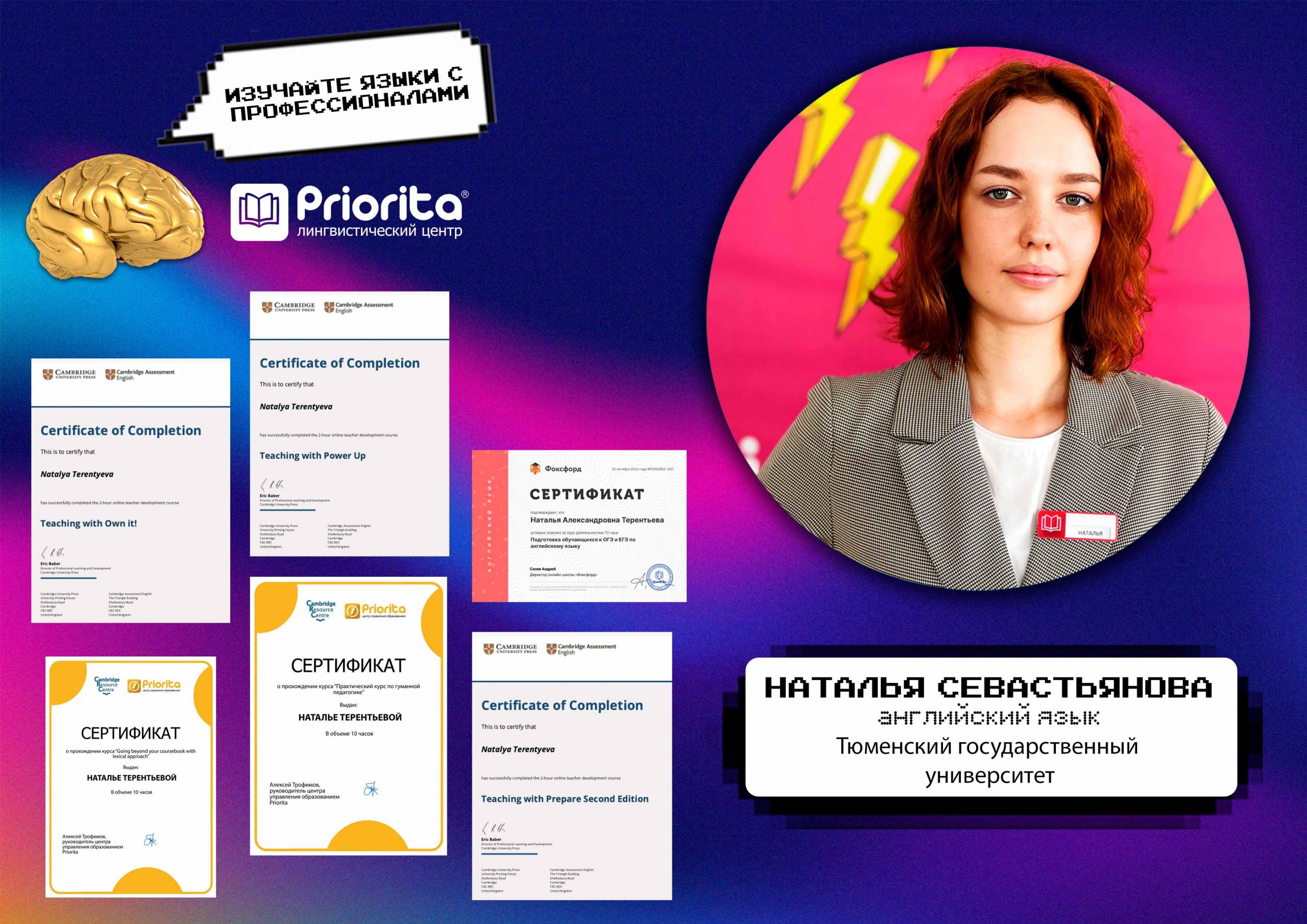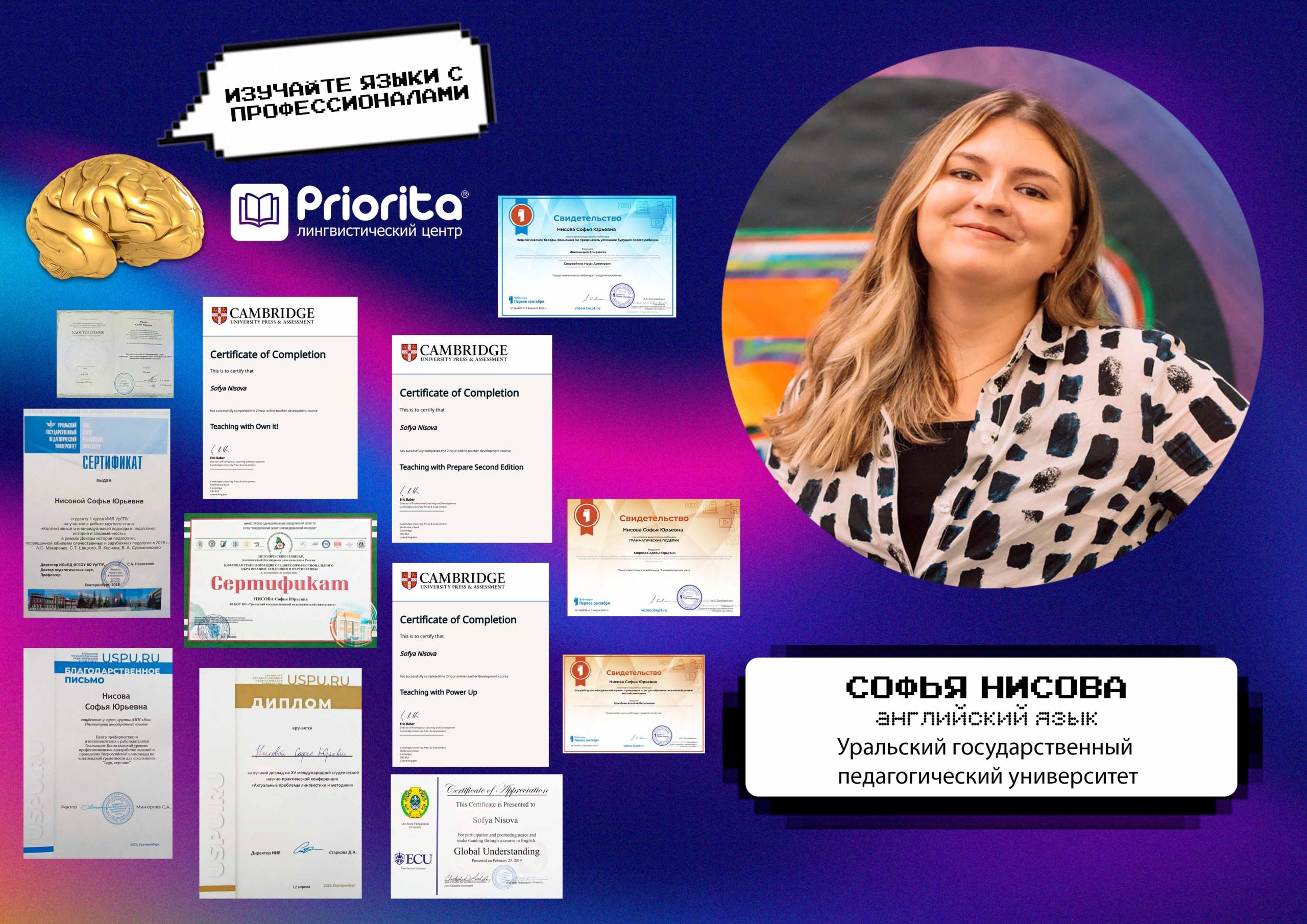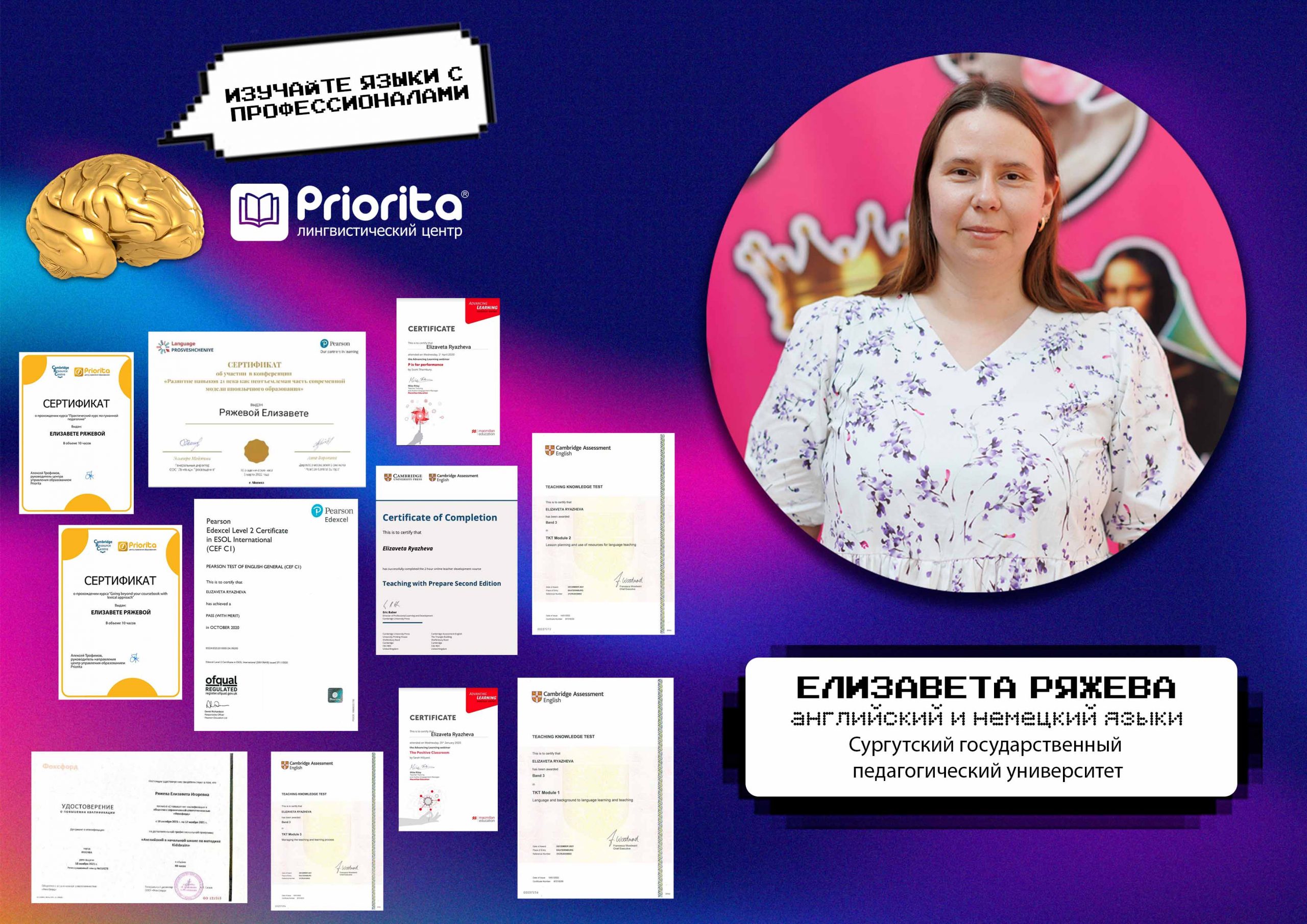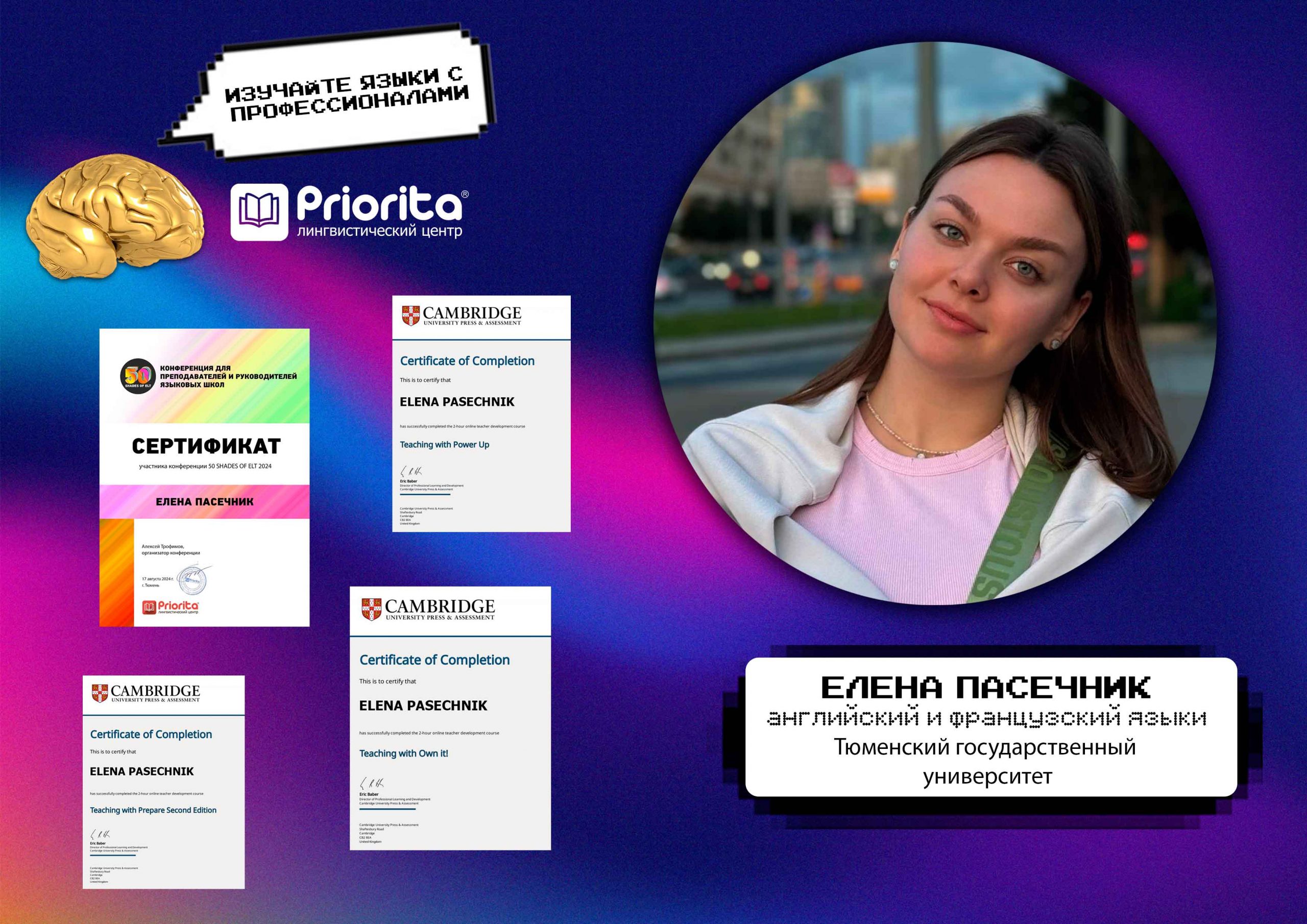 В языковом центре Priorita работают только квалифицированные и мотивированные преподаватели, каждый из которых обладает глубоким знанием языка, современными методиками обучения и реальным опытом работы с детьми и взрослыми. Если вы ищете курсы английского, французского, немецкого или китайского языка в Тюмени — наши преподаватели будут вашим ключом к успеху.